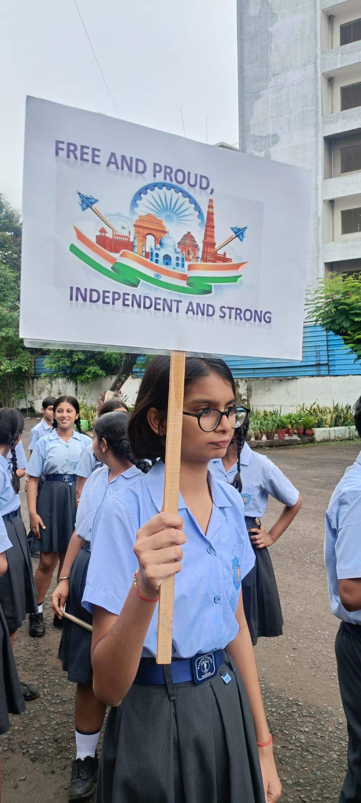 The rally ,filled with tricolor flags and slogans of unity, saw spirited participation from students of Std. VIII ,IX &XI who marched with enthusiasm, spreading the message of harmony, freedom, and love for the country.