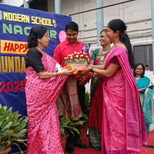 Modern School, Koradi Road Celebrates 38th Foundation Day on 14th July 2025, Modern School, Koradi Road, celebrated its 38th Foundation Day with great enthusiasm and joy. The day commenced with a grand felicitation of the esteemed Director, Mrs. Neeru Kapai. She was warmly welcomed and honored with a delightful floral bouquet and a special token from Modern School, symbolizing appreciation for her leadership and dedication. Later she addressed the parents and students, sharing words of inspiration and highlighting the school’s journey of excellence.