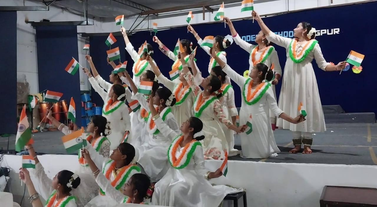 The event concluded with a Vote of Thanks, the singing of Vande Mataram, and the distribution of sweets to all present. The proceedings were compered by Mrs. Sujata Singh and Mrs. Kshama Nayak, and the celebration was meticulously organised under the supervision of Mrs. Mamta Gunjal, the convenor of the program .The celebration was a memorable tribute to the nation, fostering unity and patriotic pride among students and staff alike.