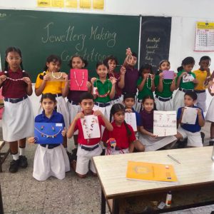 Jewellery helps in enhancing one’s beauty. Jewelry is a form of art for self and creative expression. Jewellery making competition was held in the school on 5/8/2023 to showcase the creative talent of its students. The event aimed to encourage innovation and artistic expression among the students. The competition was a vibrant celebration of creativity and skill for the students of grade 3,4 and 5. The participants showcased an impressive array of designs using different materials. Their ability to transform ordinary materials into stunning pieces of art left the judges in awe.