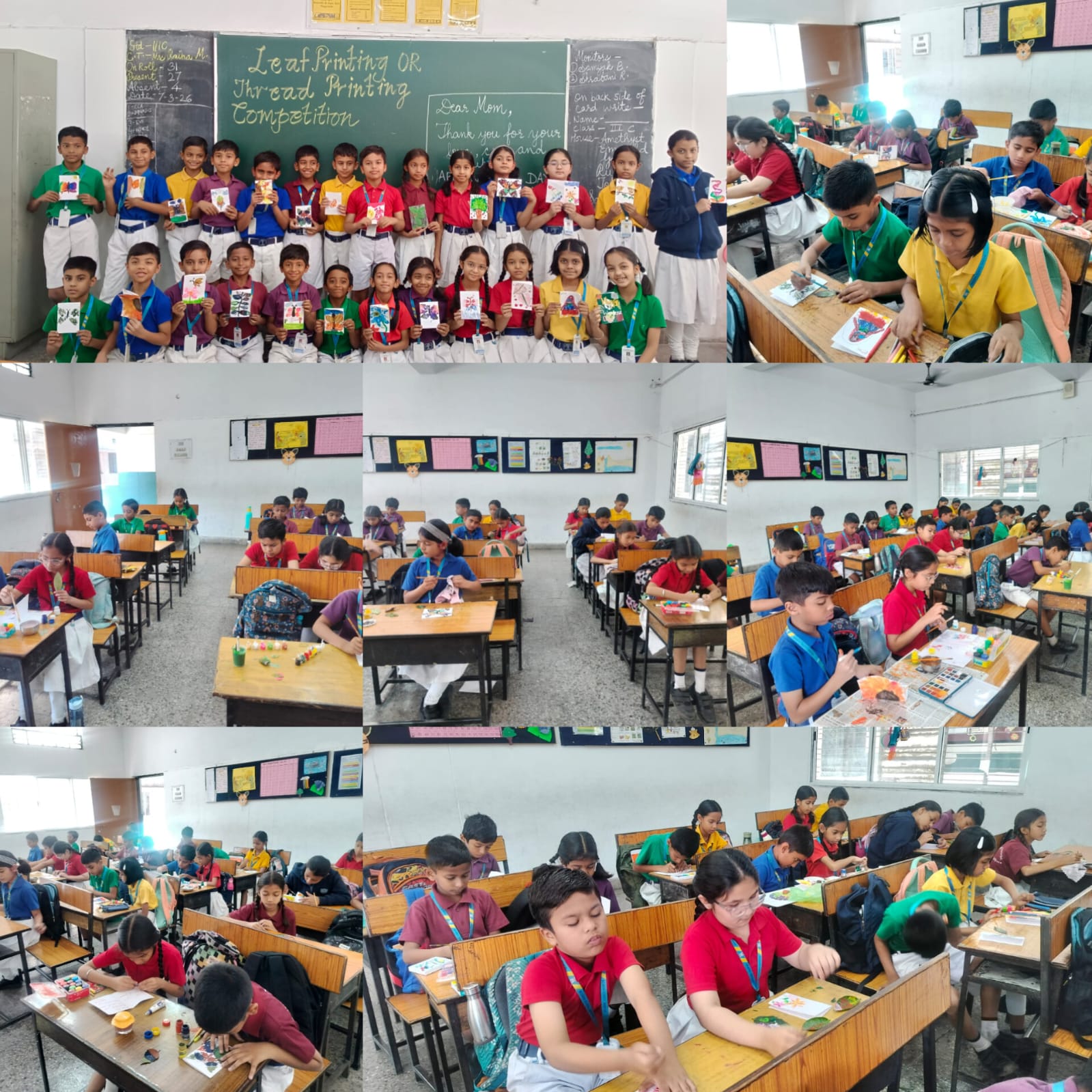 Preparatory Stage – Leaf Printing and Thread Printing Competition for Foundational Stage students was held on 7/3/26 as part of the CCA activity during zero and first period. The event was judged by Mr. Prashant Mohril.Brimming with enthusiasm and creativity, students showcased their artistic flair by using natural leaves and colorful threads to create imaginative patterns. Little hands worked their magic to create beautiful textures of nature and abstract designs on paper. The competition was seamlessly organized under the expert supervision of CCA Incharge, Mrs. Raina Mesram, and Principal Ms.- Rupali Dey, Director- Mr. Amit Yenurkar, ensuring its smooth execution and success.